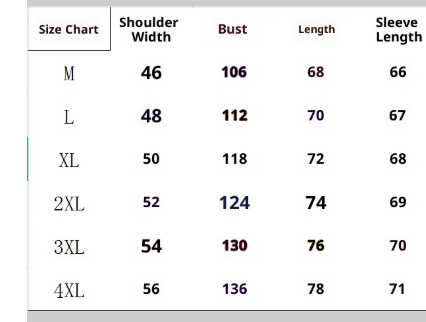 Size: M, L, XL, XXL, XXXL, XXXXL